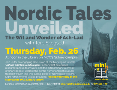 Join us for an engaging discussion of the Norwegian folktale "Ashlad and His Good Helpers," a story that celebrates resourcefulness, teamwork, and the extraordinary talents of ordinary people. Explore the gentle humor and rich cultural tradition woven into this classic piece of Norwegian folklore. Pick up your copy of this story at the MCC Library today! Light refreshments will be provided.