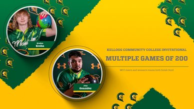 Individually, the Centurions were led by sophomore Bradon Krohn (Fruitport, Mich.), who finished with a three-game series of 622 after bowling games of 225, 216 and 181. Krohn was one of two individuals to reach a series of 600, placing second overall to Hunter Pennington of Kellogg CC, who finished with a series of 628 (206, 223, 199). Sophomore Joey Gonzalez (Greenville, Mich.) placed second for the Centurions individually with a three-game series of 543, bookending the session with games of 200 and 220.